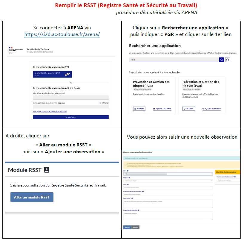 Vous trouverez ci-joint un modèle du Registre Santé Sécurité au travail (RSST) à remplir et à faire remonter à l’IEN et au snudi FO 31, siégeant aux CHSCT départemental et académique.